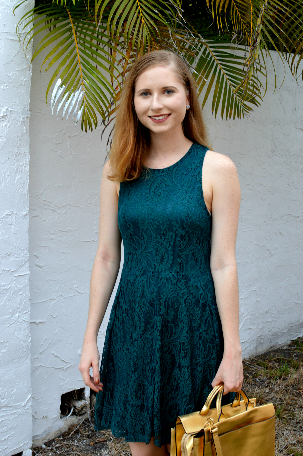 For Christmas Eve, I picked up this green lace dress from Francesca’s. This one is $20 and is similar. I absolutely loved the green color and felt very in the holiday spirit wearing it! I also got it 40% off so it was only $30.00. I wore it with my new Kate Spade bag which is a present I received from my best friend this year. It is such a great statement piece and I love the metallic gold color so much. Thanks for stopping by the blog today!