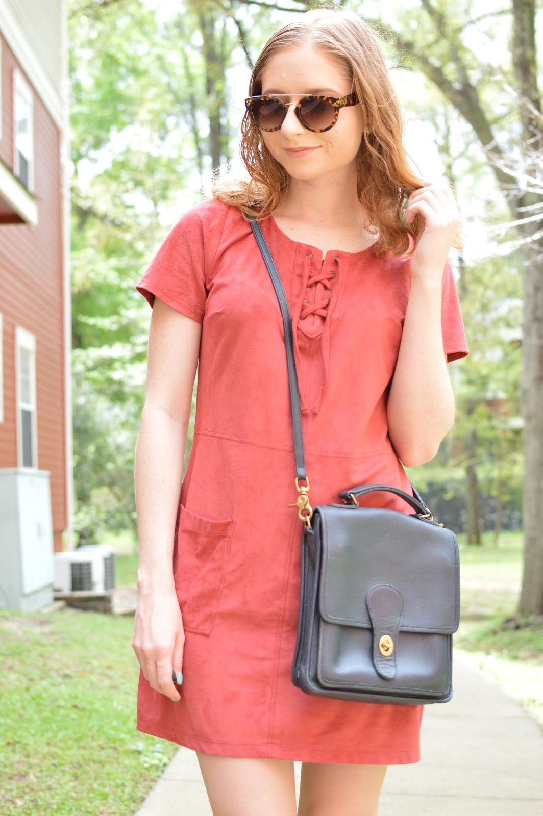 Dress: Hollister Lace-up Shift Dress $36 // Bag: Coach vintage (similar, $19 Urban Outfitters)