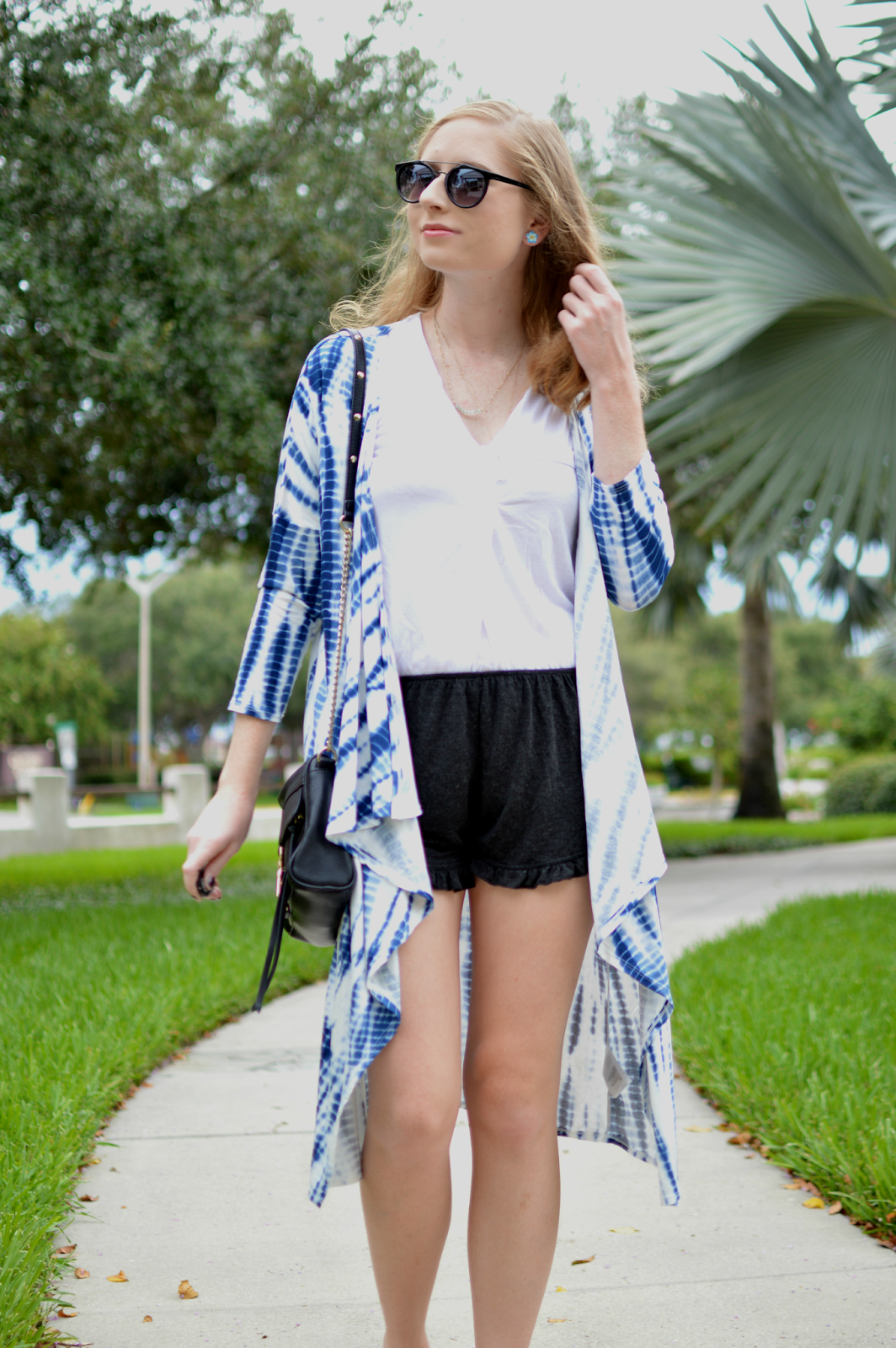 I’m very happy to post a new outfit today! I’ve had a busy few weeks–I traveled to New York last week to see my family and surprise my Grandma for her 85th birthday. We took a train into the city and I saw the Gloria Estefan broadway play with my aunts. It was beautifully done and the dancing was incredible to watch. I learned so much about her life and enjoyed singing along to all her songs. We also stopped into Maison Kayser for dessert; I ate a chocolate truffle cake that I wish I could eat all the time! I also did some shopping while in vacation. I picked up the shorts in this look. I also purchased this tie-dye kimono a few days ago from H&M. It was only $7! I couldn’t find the exact one online, but I found some similar options. Thanks for stopping by!