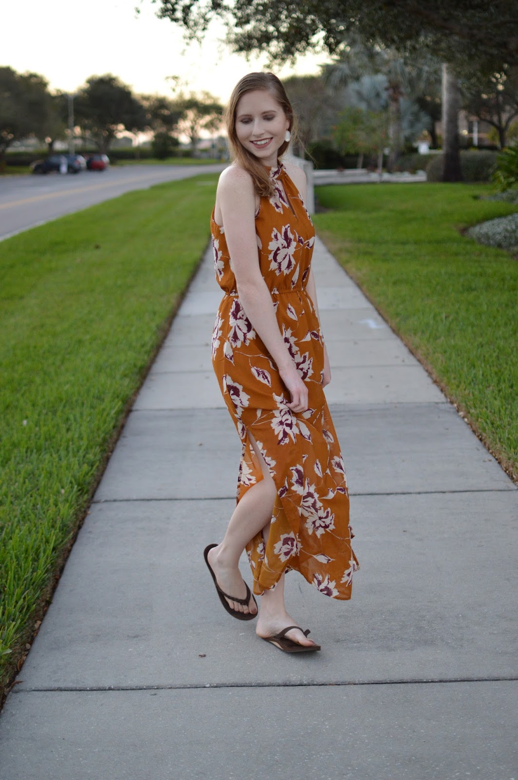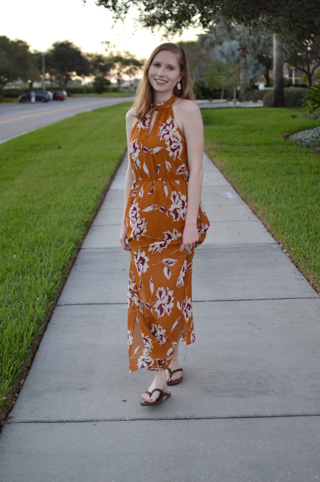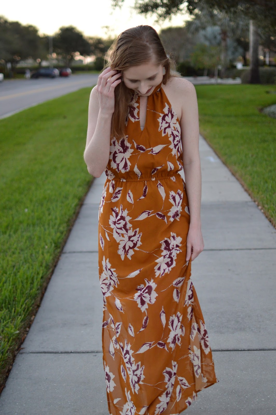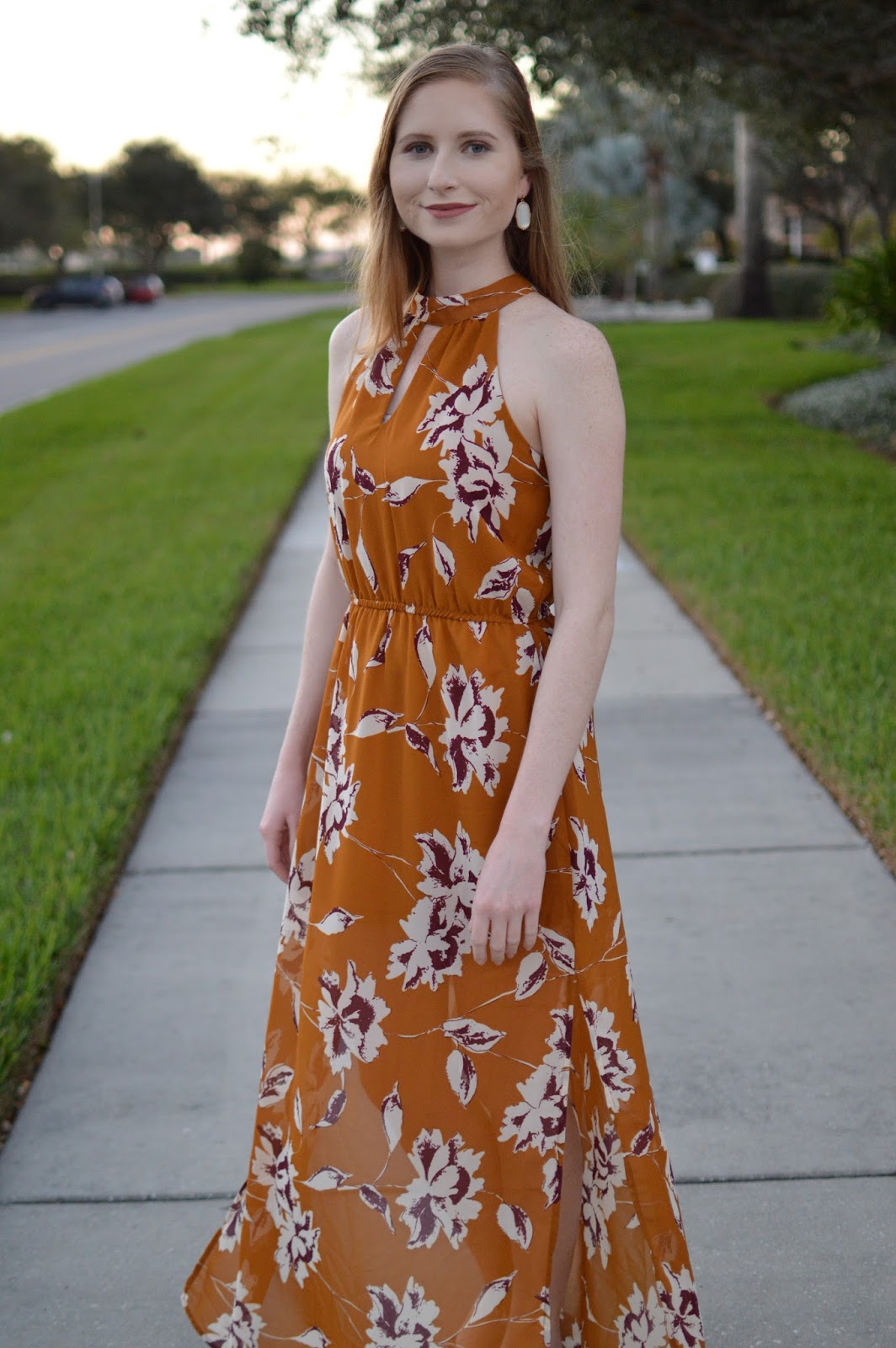 Mustard + Floral Print Maxi Dress