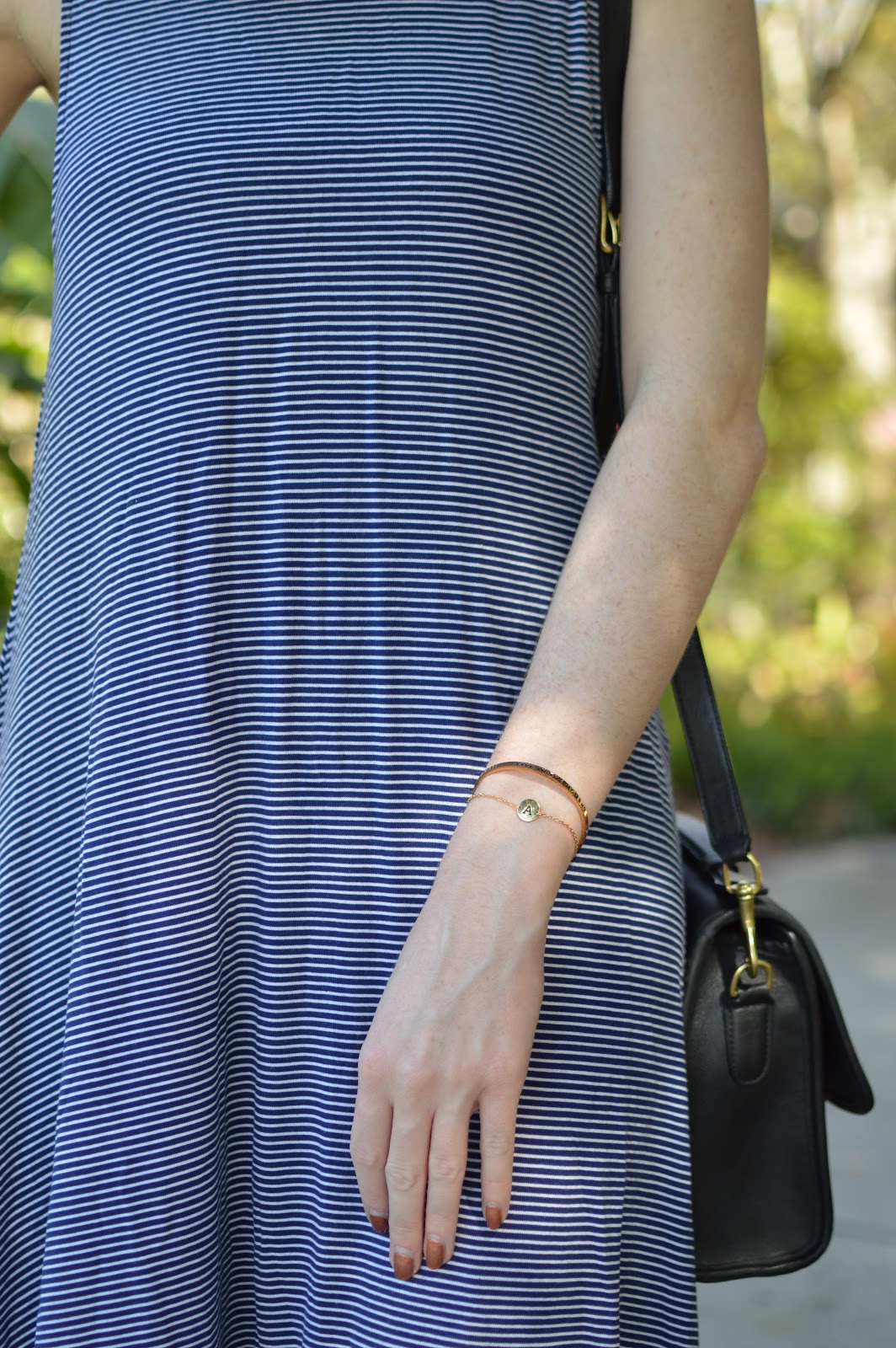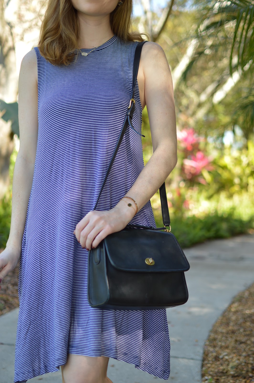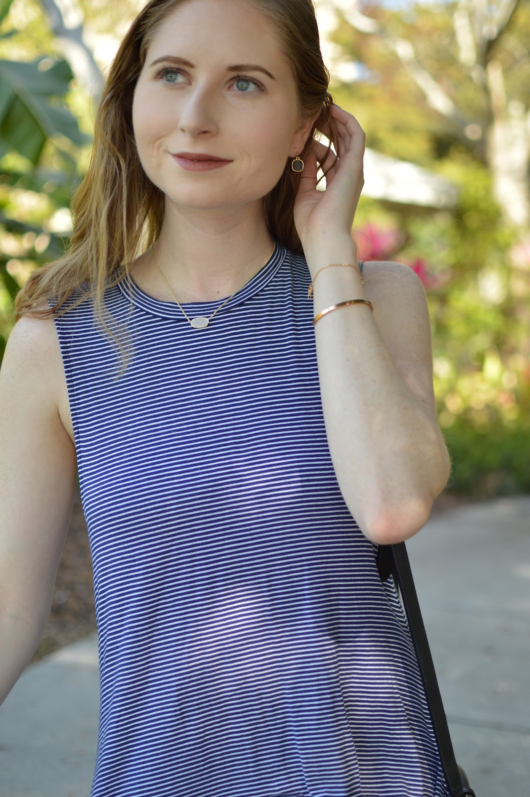 Happy Spring! It’s no surprise that I am wearing stripes in bring in the new season, haha. I adore this trapeze dress from RVCA because its navy AND it has pockets! A great way to stash your wallet or phone while you explore. Since I live in Florida I own tons of breezy dresses. Right now I’m wearing this type of dress because it’s the perfect beach day cover-up or downtown shopping look. I’ve linked more options that are also similar in price! I have on a buxom lipstick in a cinnamon color that is so pretty as a nude lipstick! It is creamy and long-lasting, too.