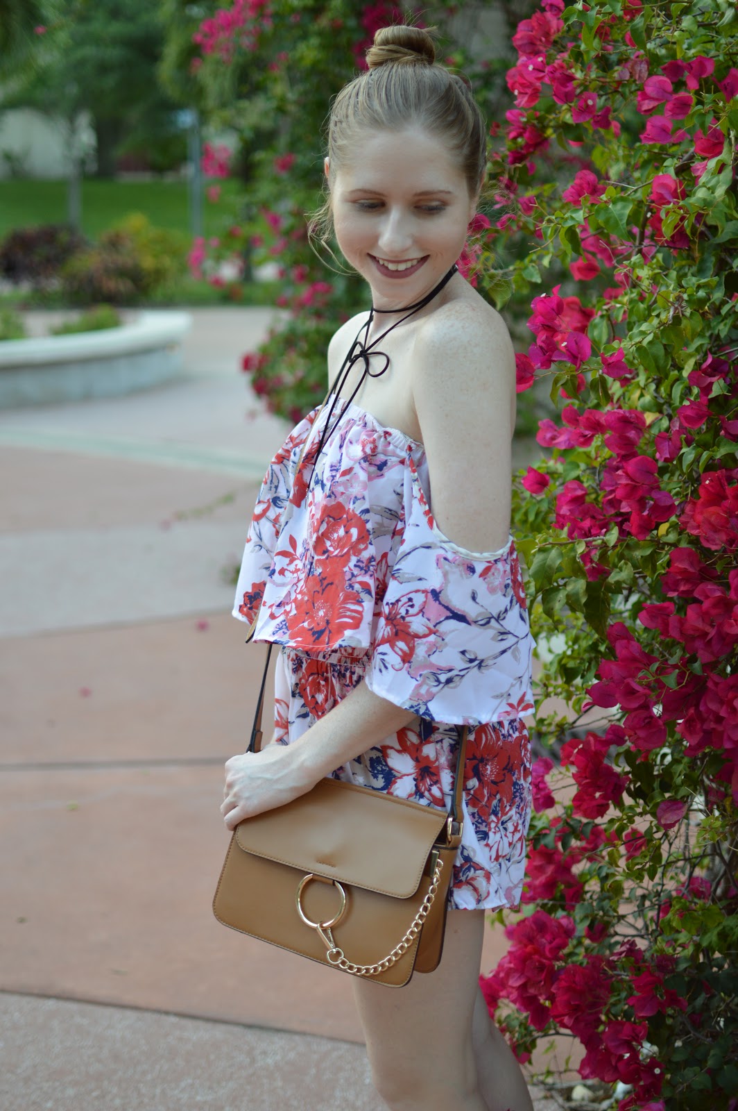 Rompers are my easy way to cheat at looking cute without putting in a ton of effort! On especially lazy days when I just need to roll out of the house and want to look put together, I slip into A ROMPER. I love this floral romper for days like those. The overflowing top section creates a flattering shape to my body whenever I put this on, which is an added bonus! I also am trying out this BOW CHOKER for the first time in this look…let me know if you are also into the choker trend!