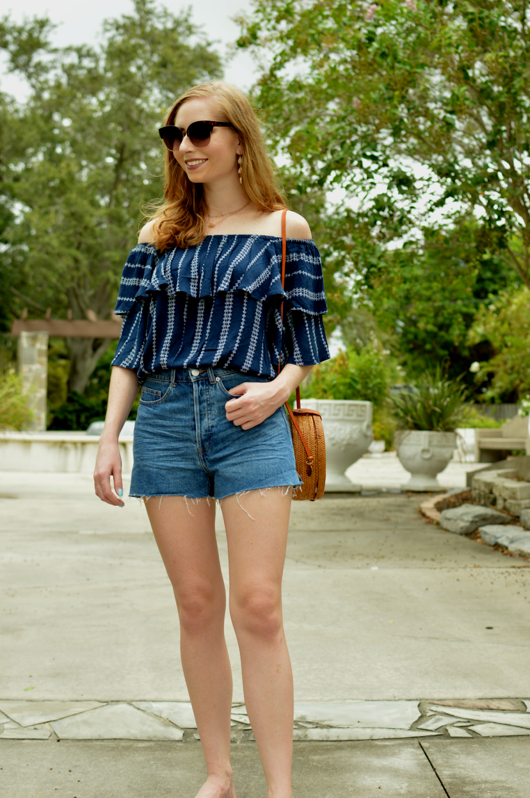 Switching gears and talking about my cheap H&M SHORTS here. I’ve found flattering denim shorts that are high-waisted but still cover your butt, that’s a major win! These are SO easy to button up, too. Of course, I have my favorite IT bag of the moment again. The ETSY version is just $75 while the FREE PEOPLE one is around $130. I’ve worn it so much that it’s already paid for itself in use!