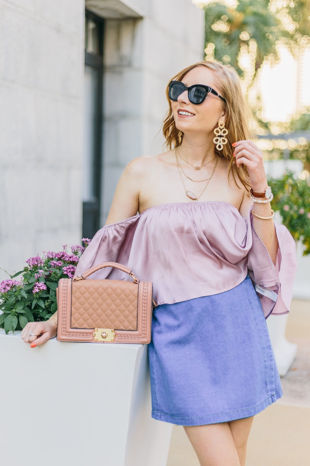 TOP: Forever 21 Satin Off-the-shoulder Top ($38) || Forever 21 Satin Crop Top || Forever 21 Satin Open Shoulder Top ($22) || SKIRT: Forever 21 Light Wash Denim Skirt ($19.90!)