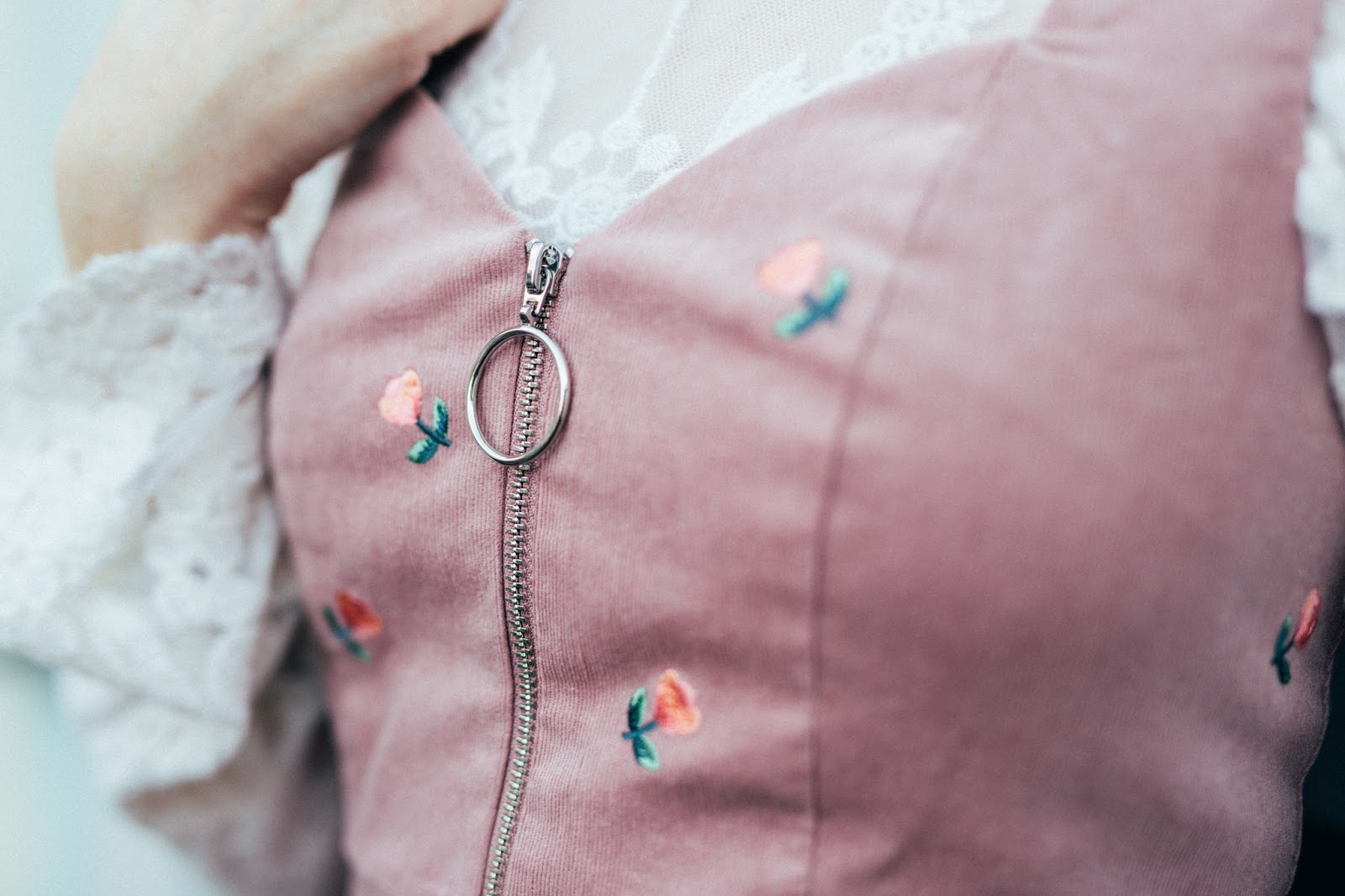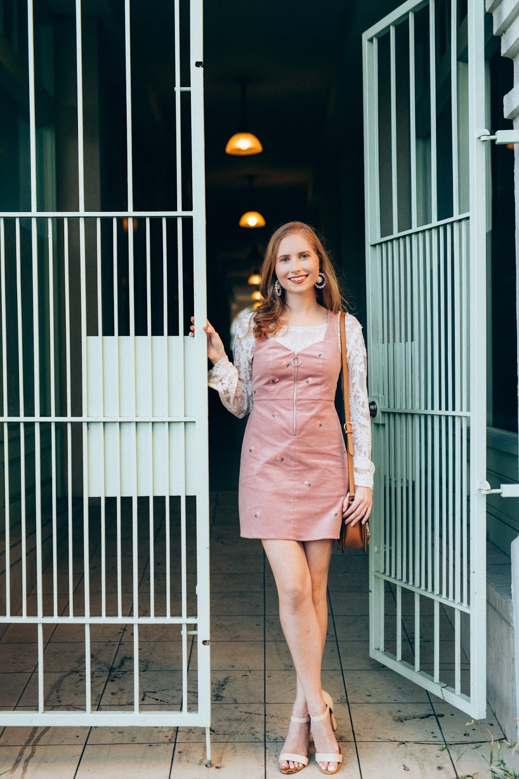A pinafore dress is so exciting to style. I found this TOPSHOP option recently. The blush pink and cute floral details are what won me over.