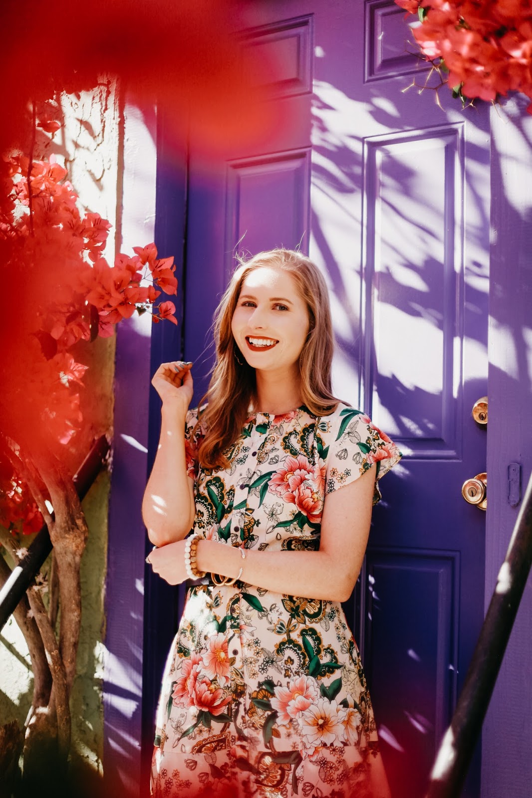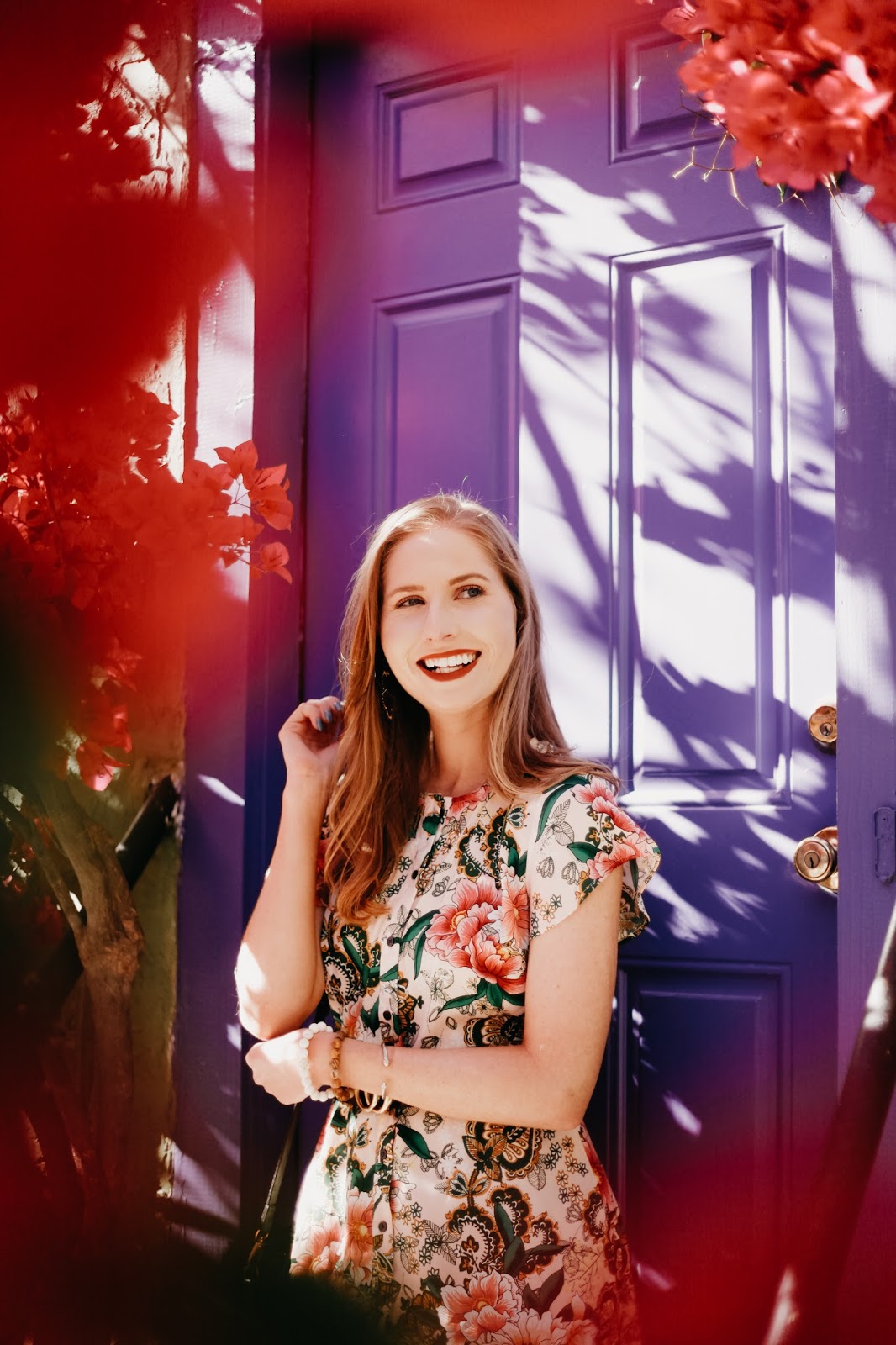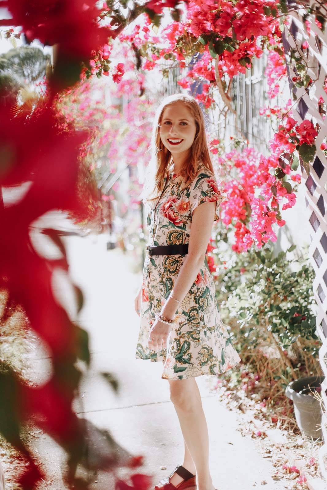 Found at LOFT, one of my favorite stores to shop in, this adorable floral garden shirtdress needed to be worn against the beautiful bougainvillea.