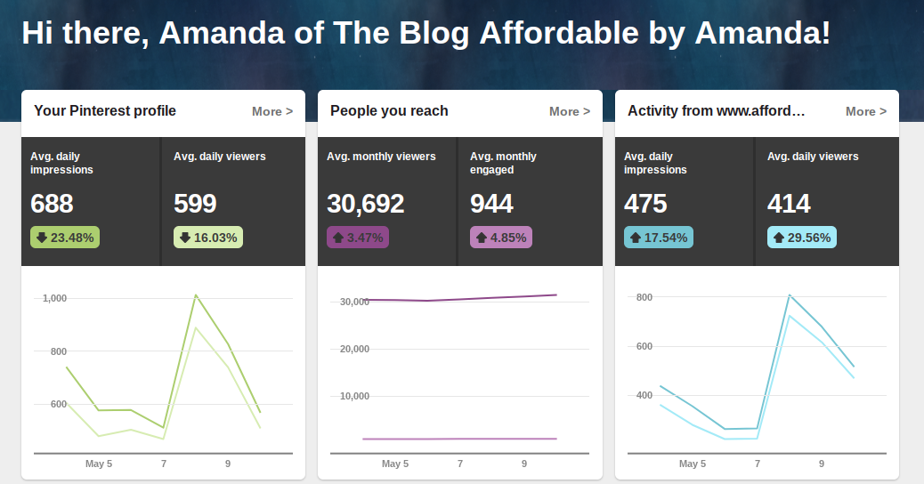 | Here is my Pinterest analytics, for example! |