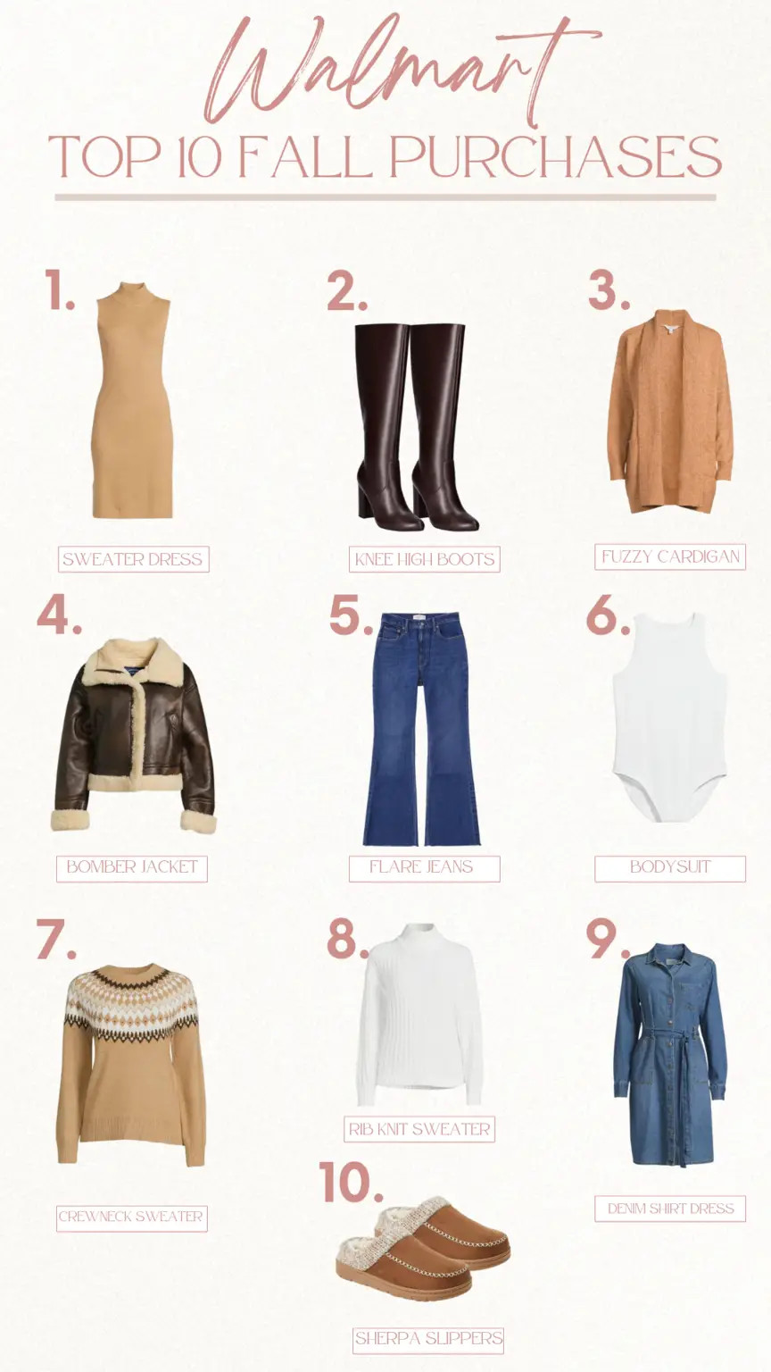 My top 10 recent fall purchases from Walmart. These Walmart finds are all affordable, on-trend, and great fall must-haves. On my blog and over on YouTube I try to share Walmart try on hauls a few times a month to include their latest arrivals. As the seasons changed from summer into fall, so did my wardrobe! I slowly added jeans, sweaters, boots, and sweater dresses into my wardrobe rotation. See my top 10 Walmart fall must haves in this previous blog post, too.