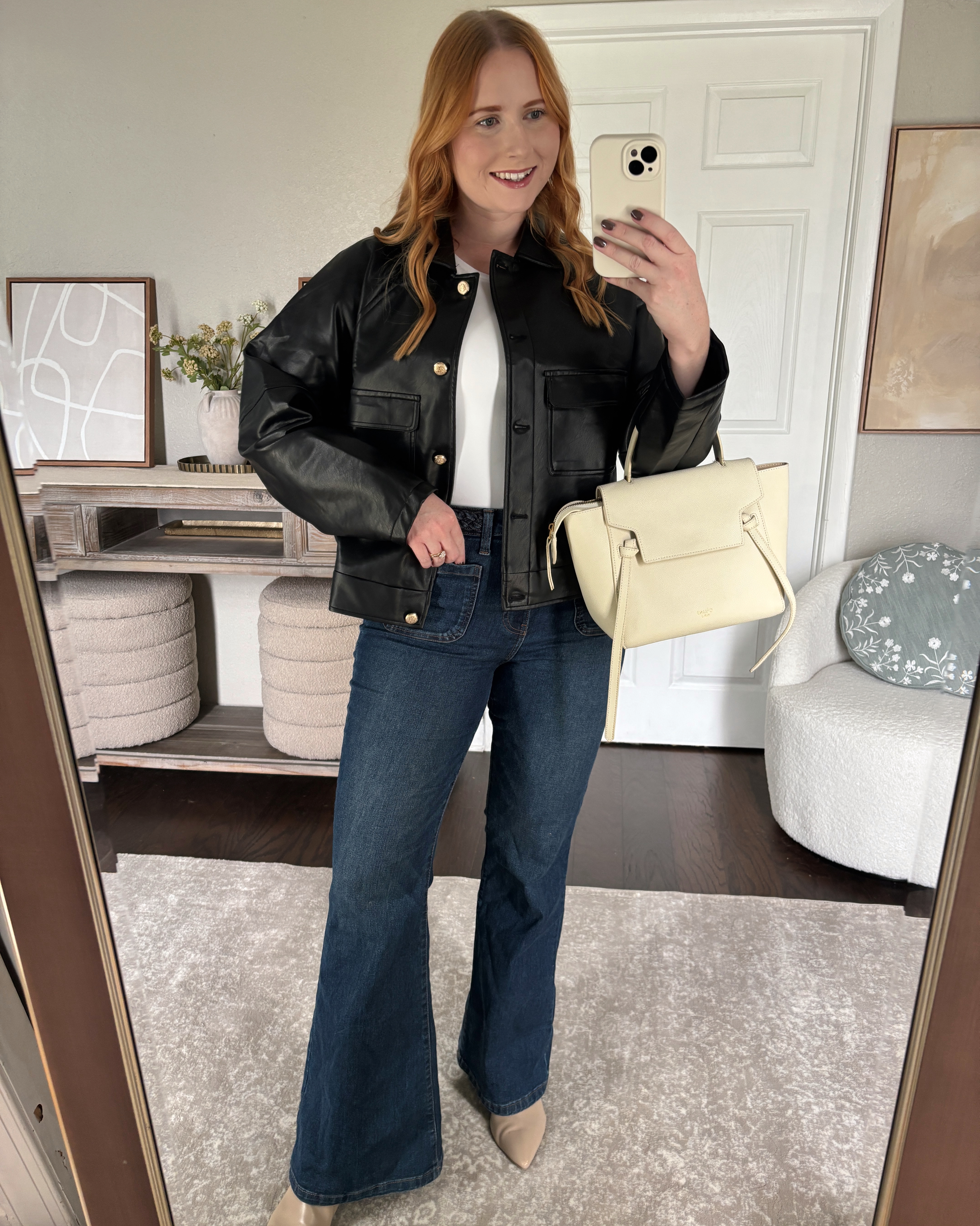 Sleeveless Cable Knit Vest | Barrel Jeans | Faux Suede Flats