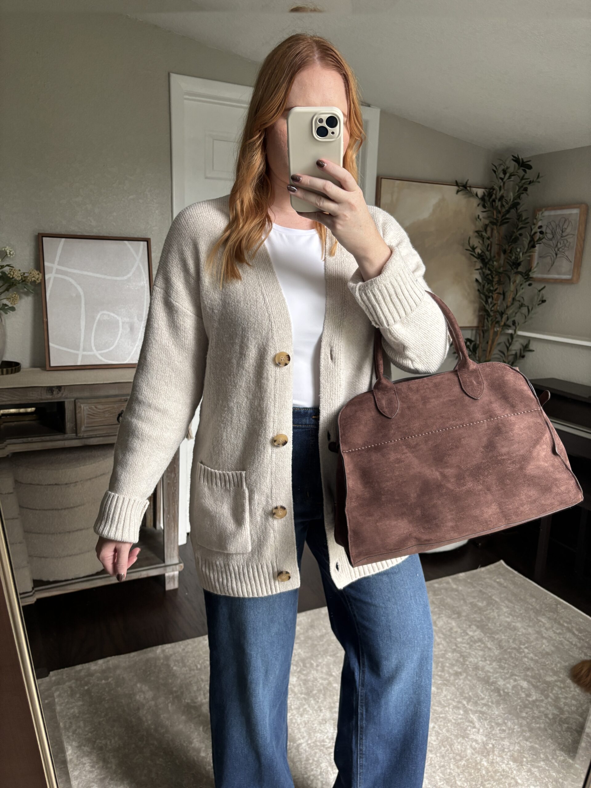I really hope Walmart brings this Grandpa cardigan back for 2026 because I loved the fit, texture, and neutral tone to this easy piece. You can wear this over a dress, bodysuit, long sleeve tee – so many great outfits were created thanks to this affordable, effortless button front cardigan from Walmart.