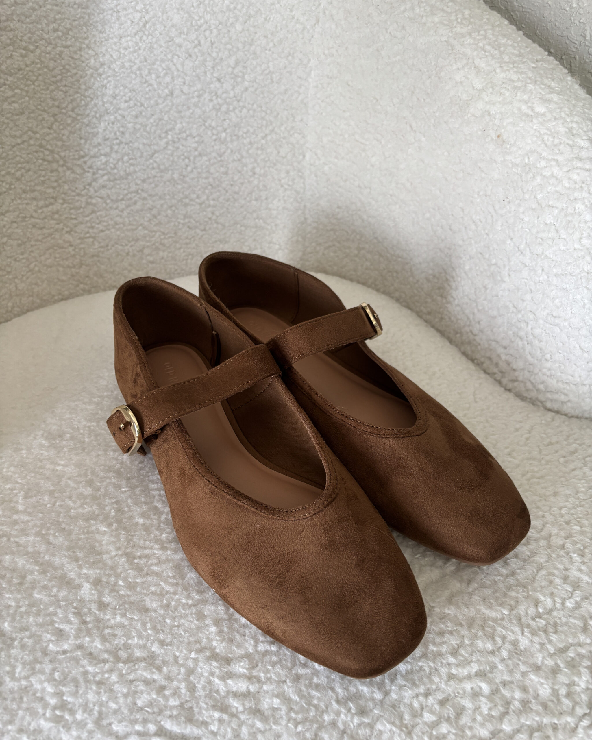 Mary Jane shoes also really took off in 2025 – I found these sleek brown faux suede flats at Old Navy. These flats look great paired with jeans and dresses alike.